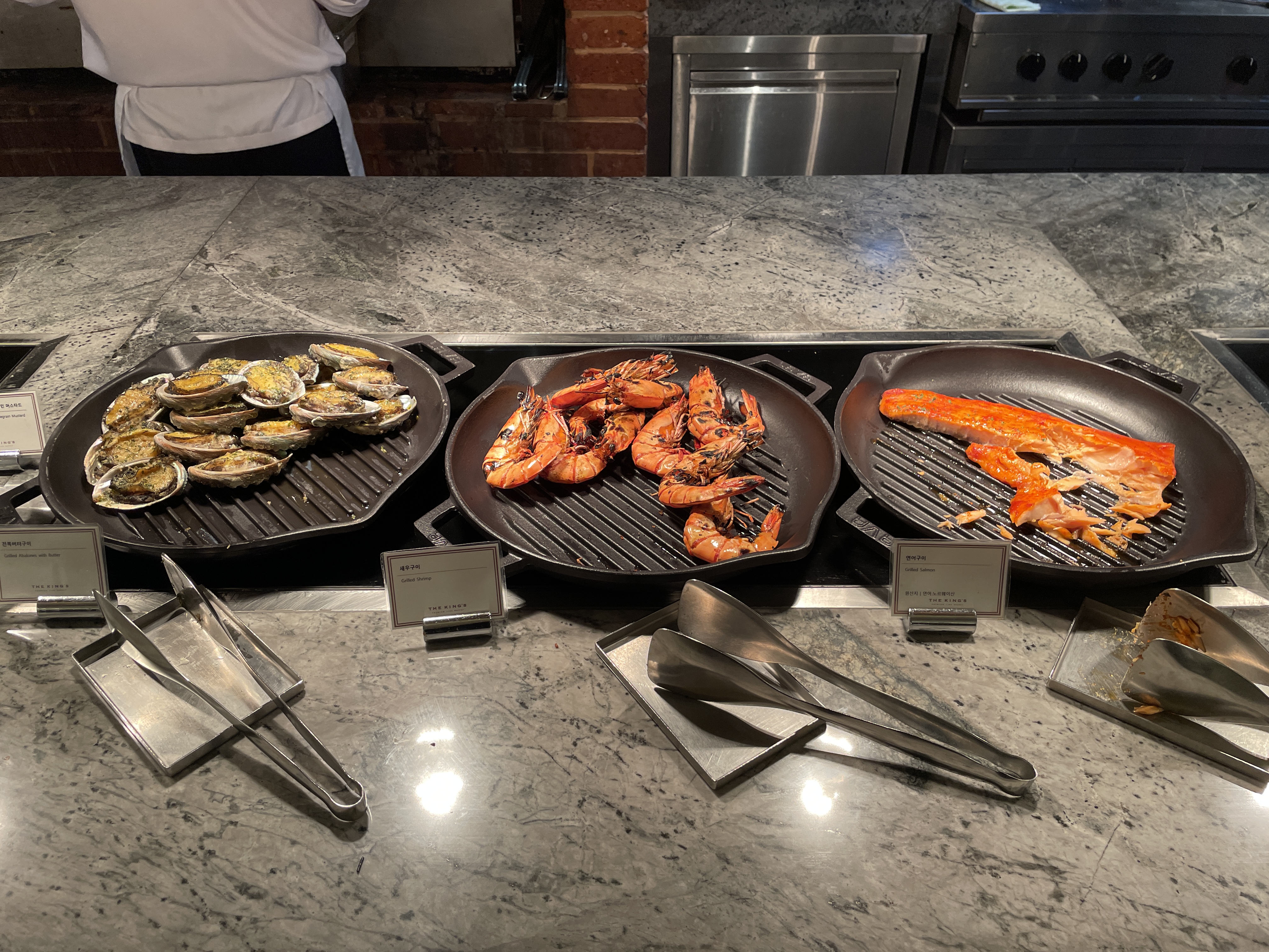 연어, 새우, 전복, 양갈비, LA갈비 등